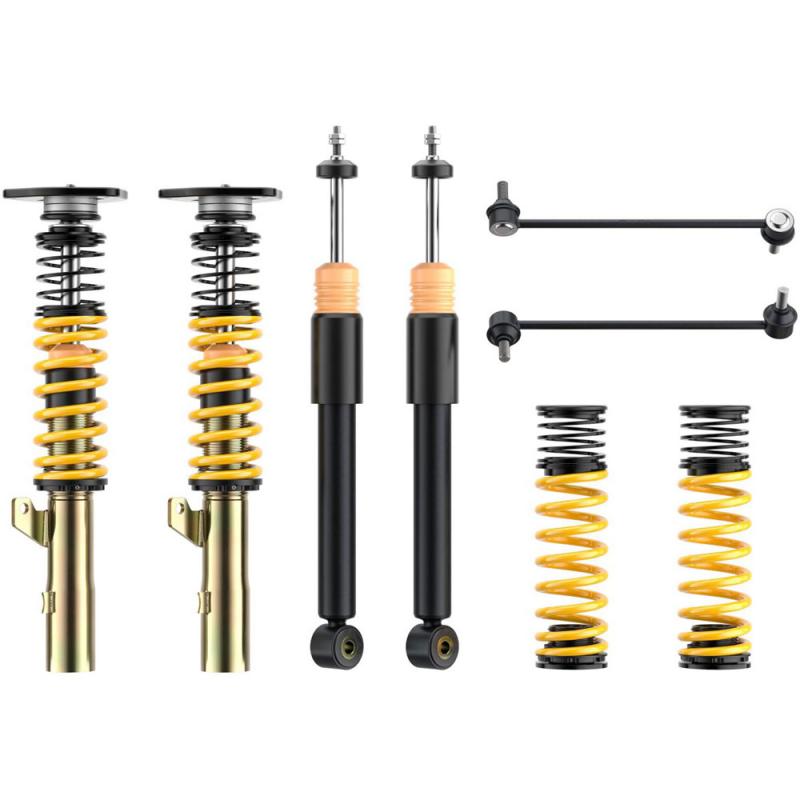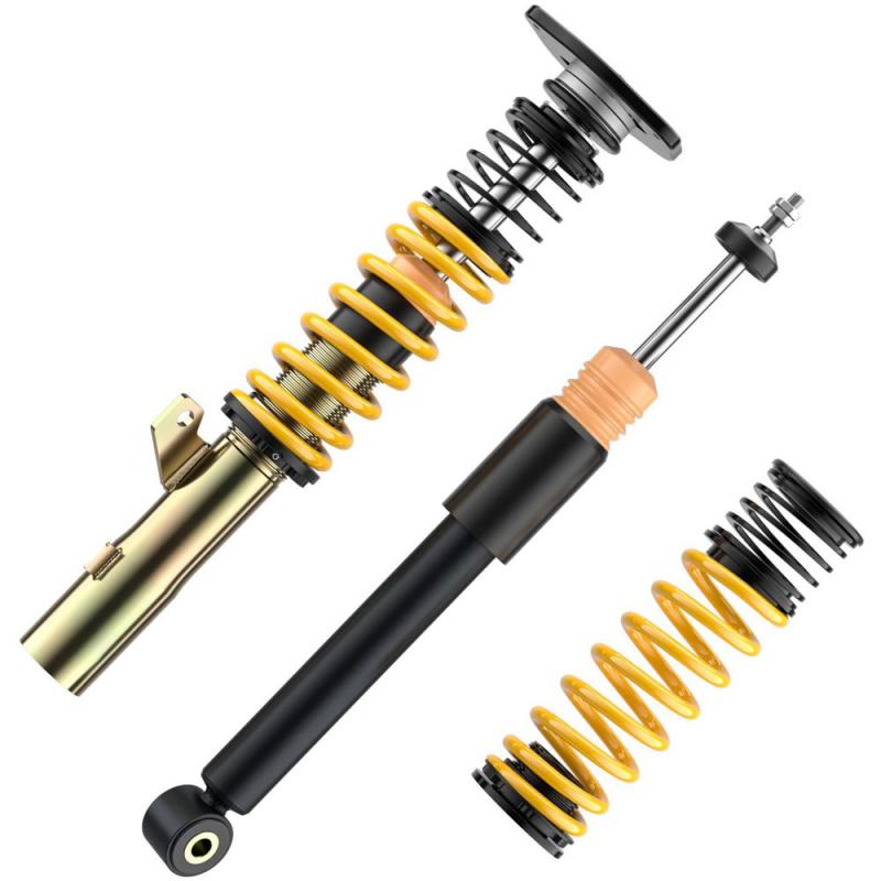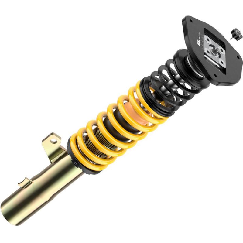 Für besonders sportlich ambitionierte Fahrer entwickelt ST Suspensions die ST XTA Gewindefahrwerke. Mit dem einstellbaren Dämpfersetup der KW Technologie und den einstellbaren Aluminium-Unibal-Stützlagern kann das Fahrverhalten umfangreich abgestimmt werden. Highlight bei dieser Version sind die Aluminium-Unibal-Stützlager, durch die der Sturz und zusätzlich auch der Nachlauf eingestellt werden kann. Die hochwertigen ST XTA Gewindefahrwerken basieren auf dem Zweirohrdämpfungsprinzip in reibungsarmen und druckbeständigen Dämpfergehäusen. Ein Monoblock-Führungs- und Dichtungspaket reduziert im Dämpfer die Reibung beim Ein- und Austauchen der verchromten Kolbenstange. Dazu sorgen ein optimaler Korrosionsschutz und eine mehrfache Versiegelung des verzinkten Federbeins für einen langen Fahrspass mit den ST XTA Gewindefahrwerken. Wie bei allen ST XTA Gewindefahrwerken erfolgt die stufenlose Einstellung der Tieferlegung über den Gewindefederteller. Dazu nutzt ST Suspensions ebenfalls wie KW einen Polyamid-Verstellederteller, der über das Trapezgewinde am verzinkten Federbein ein leichtes Verstellen der Tieferlegung erlaubt.