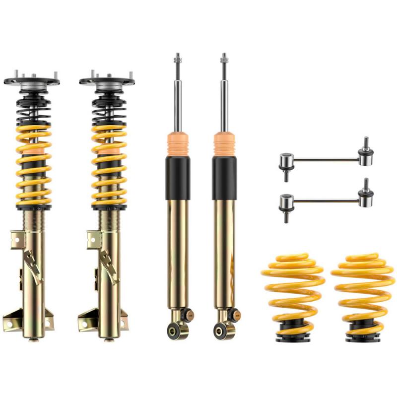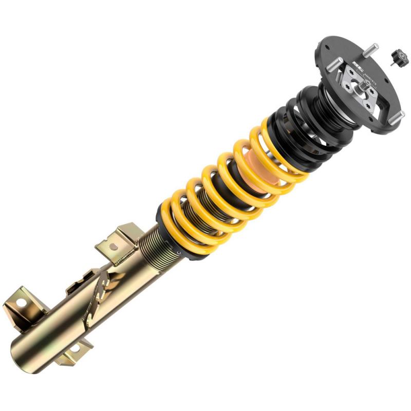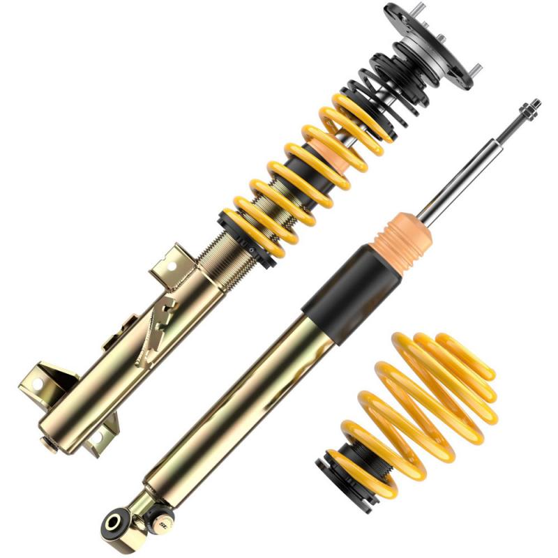 Für besonders sportlich ambitionierte Fahrer entwickelt ST Suspensions die ST XTA Gewindefahrwerke. Mit dem einstellbaren Dämpfersetup der KW Technologie und den einstellbaren Aluminium-Unibal-Stützlagern kann das Fahrverhalten umfangreich abgestimmt werden. Highlight bei dieser Version sind die Aluminium-Unibal-Stützlager, durch die der Sturz und zusätzlich auch der Nachlauf eingestellt werden kann. Die hochwertigen ST XTA Gewindefahrwerken basieren auf dem Zweirohrdämpfungsprinzip in reibungsarmen und druckbeständigen Dämpfergehäusen. Ein Monoblock-Führungs- und Dichtungspaket reduziert im Dämpfer die Reibung beim Ein- und Austauchen der verchromten Kolbenstange. Dazu sorgen ein optimaler Korrosionsschutz und eine mehrfache Versiegelung des verzinkten Federbeins für einen langen Fahrspass mit den ST XTA Gewindefahrwerken. Wie bei allen ST XTA Gewindefahrwerken erfolgt die stufenlose Einstellung der Tieferlegung über den Gewindefederteller. Dazu nutzt ST Suspensions ebenfalls wie KW einen Polyamid-Verstellederteller, der über das Trapezgewinde am verzinkten Federbein ein leichtes Verstellen der Tieferlegung erlaubt.