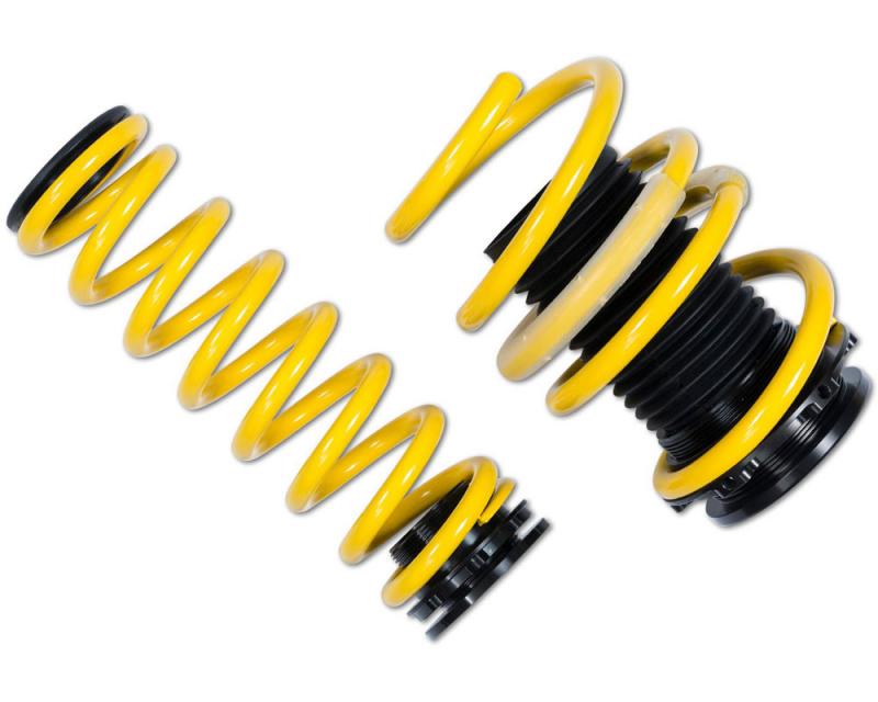 Ähnlich wie bei einem Gewindefahrwerk erlauben die in der Höhe stufenlos einstellbaren ST Gewindefedern eine individuelle Tieferlegung einzustellen. Sie sind perfekt geeignet für adaptive Fahrwerke - die Seriendämpfer und die elektronische Dämpferregelung werden beibehalten. Die fahrzeugspezifischen Staubschutzelemente und Zusatzfederelemente sind auf die grösstmögliche Tieferlegung in Verbindung mit dem jeweiligen Seriendämpfern ausgelegt. So wird mit den ST Gewindefedern ein sportliches, harmonisches Fahrverhalten realisiert, ohne dass die Fahrdynamik leidet. Durch den gesenkten Karosserieschwerpunkt profitiert die Fahrdynamik durch ein verbessertes Handling. Auch bei starken Lenkbewegungen und schnellen Kurvenfahrten reduzieren sich durch die geringere Rollneigung die Karosserieaufbaubewegungen.